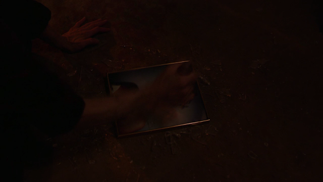 Sarah enters the frame and grabs the iconic framed prom picture of Laura. She begins to stab it over and over with a broken bottle, until the footage reverses and goes back and forward again and again with repeated stabs.Fluctuating time?Trying to reverse the past?Judy needs Laura to die.The glass in the frame breaks, but the photo never is damaged.This time the Mother is trying to stab and murder her daughter ,not the Father